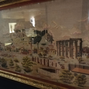 Ο Υλικός πολιτισμός συμβολοποιείται για να λειτουργήσει σαν φορτίο εθνικών μηνυμάτων. Βιβλία, φιλοσοφικά έργα, φουστανέλες, γαμπριάτικες φορεσιές, φυλαχτά, αφίσες, σπιρτόκουτα, μαθητικά περιοδικά, σημαίες, σχολικές ποδιές, αφίσες ηρώων του ΄21, μαθητικές παρελάσεις.