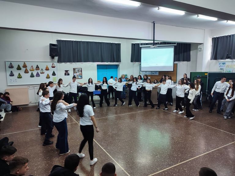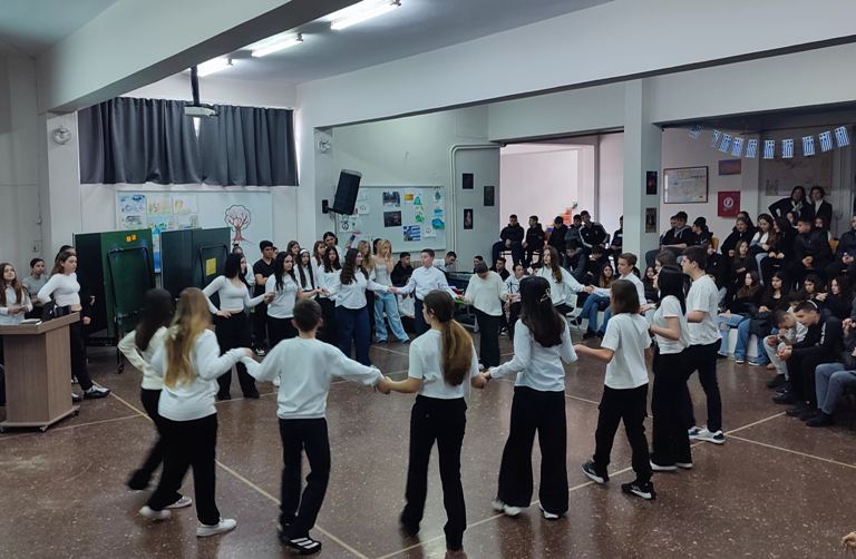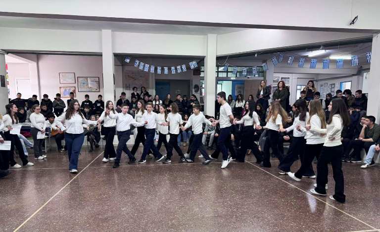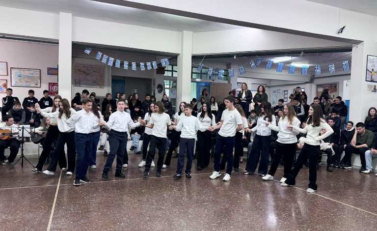 Η σχολική γιορτή μας άνοιξε με το τροπάριο της Οσίας Παρασκευής της Επιβατινής που απέδωσε μελωδικά η χορωδία του σχολείου μας, αφού ο Αλέξανδρος Υψηλάντης ξεκίνησε την Επανάσταση από το Ιάσιο στο ναό που βρισκόταν το σκήνωμα της Αγίας. Στη συνέχεια έγινε αναφορά στον ηρωισμό κ στην αυτοθυσία των Ελλήνων, αλλά κ στον δόλιο ρόλο των Μ. Δυνάμεων. Ακολούθησε θεατρικό δρώμενο και παραδοσιακοί χοροί. Οι μαθητές χόρεψαν με λεβεντιά κ χάρη κ φάνηκαν αντάξιοι των περιστάσεων.